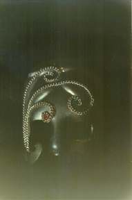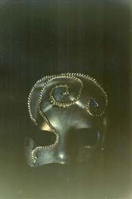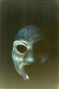 Três exemplares das máscaras criadas e executadas em acetato, para os atores da peça "O TEMPO NÃO PARA" .